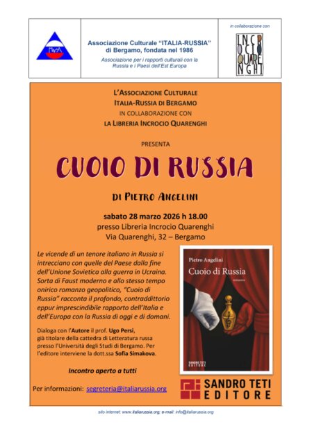 In collaborazione con la Libreria “Incrocio Quarenghi”, presentazione del libro Cuoio di Russia di Pietro Angelini, ed. Teti, Roma 2025.