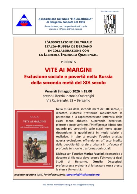 In collaborazione con la libreria “Incrocio Quarenghi”: presentazione del libro di Marica Fasolini, Vite ai margini. Esclusione sociale e povertà nella Russia della seconda metà del XIX secolo, ed. Ledizioni, Milano 2025.